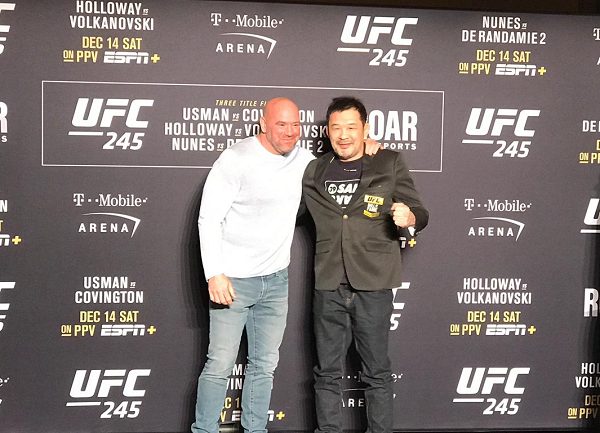 Uma das maiores lendas do MMA, Kazushi Sakuraba foi incluído no Hall da Fama do Ultimate em 2017. Porém, até então o japonês não tinha recebido a jaqueta dos membros deste seleto grupo de atletas. Nesta quinta-feira (12), durante o media day oficial do UFC 245, o ex-lutador recebeu a honraria das mãos do presidente do UFC, Dana White.