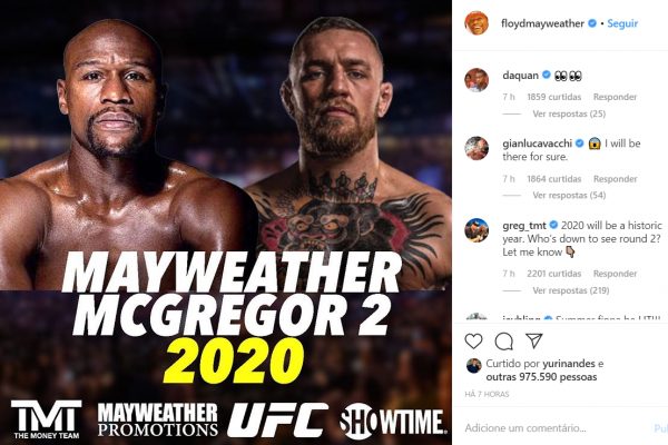 As postagens (veja abaixo ou clique aqui) pegaram os fãs do esporte se surpresa, já que nenhum detalhe entre a parceria de Floyd e Dana White havia sido revelado desde então. Outro fator que pode gerar desconfianças entre os fanáticos por boxe é a data. De acordo com as publicações de Mayweather, os dois duelos, contra McGregor e Khabib, seriam realizados ainda em 2020 – o que é pouco provável, uma vez que o projeto ‘Zuffa Boxing’ sequer saiu do papel ainda.