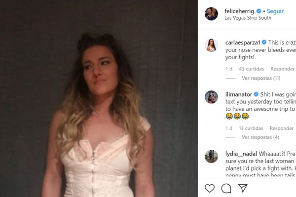 Através de suas redes sociais (veja abaixo ou clique aqui), a lutadora compartilhou um registro após o ocorrido, em que se encontra com o nariz sangrando. A aparência chamou a atenção de outra atleta do UFC: Carla Esparza. A ex-campeã da organização deixou um comentário na foto de sua companheira de liga: “Isso é uma loucura, porque seu nariz nunca sangra, nem mesmo em seus combates”, ponderou a especialista em wrestling.
