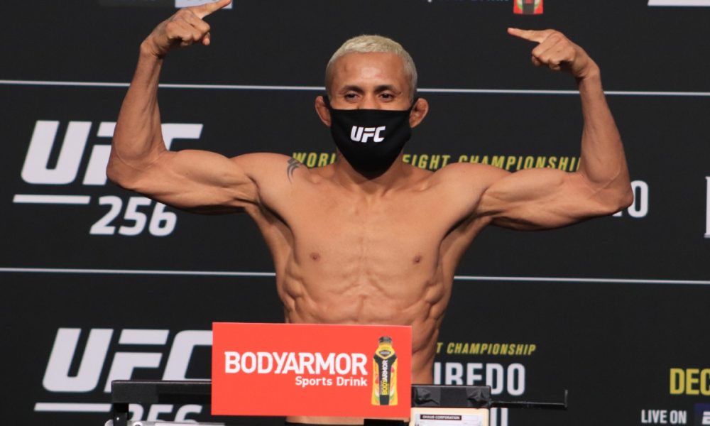 Primeiro a se apresentar no palco montado no UFC Apex, Deiveson tratou de afastar logo qualquer dúvida sobre seu corte de peso e marcou 56,4 kg, dentro do limite exigido para disputas de título na divisão dos moscas (57 kg). Vale lembrar que o brasileiro – atual campeão da categoria – teve problemas para bater o peso em um passado não tão distante e o pouco tempo de descanso de sua última luta, realizada no dia 21 de novembro deste ano, deixou no ar a preocupação sobre uma possível falha na balança.