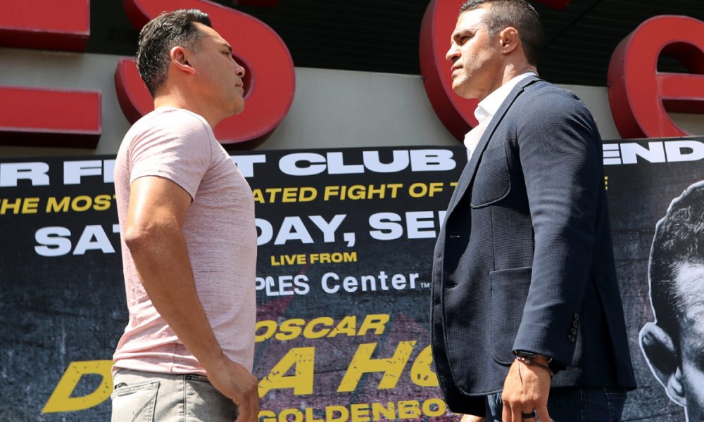 Programada para ser a luta principal do evento do próximo dia 11 de setembro, o combate entre Vitor Belfort e Oscar De La Hoya não vai acontecer. De acordo com informações do site ‘TMZ Sports’, o mexicano contraiu COVID-19 e não estará apto para atuar. Porém, a organização agiu rápido e está perto de anunciar um substituto a altura.