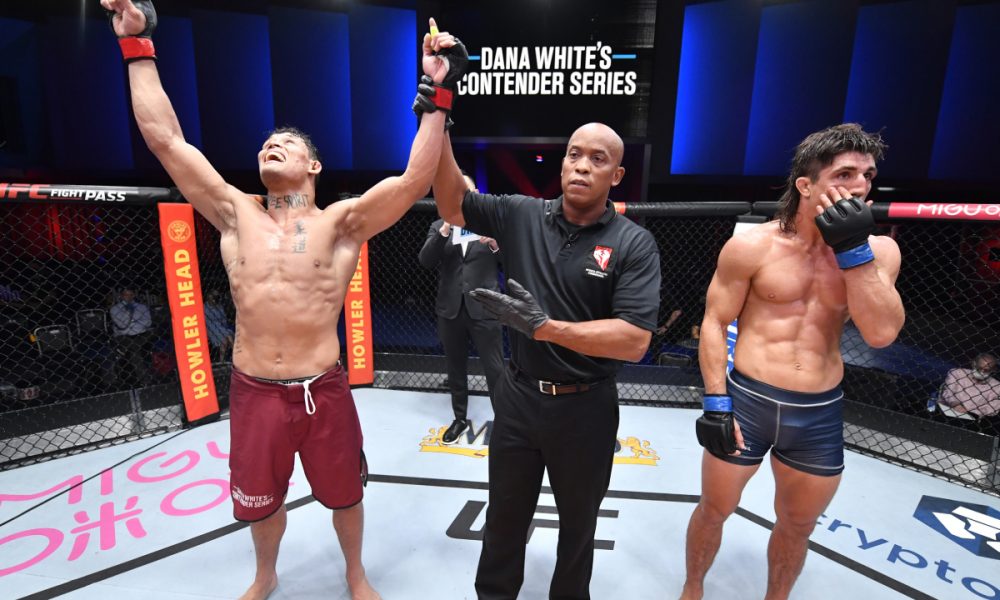 O Brasil contou com três representantes nas quatro lutas disputadas no octógono do Contender Series nesta terça-feira (28). E em um carrossel de emoções, com apenas uma vitória anotada, nenhum contrato foi entregue para nossos representantes no quinto episódio da temporada 2021 do programa.