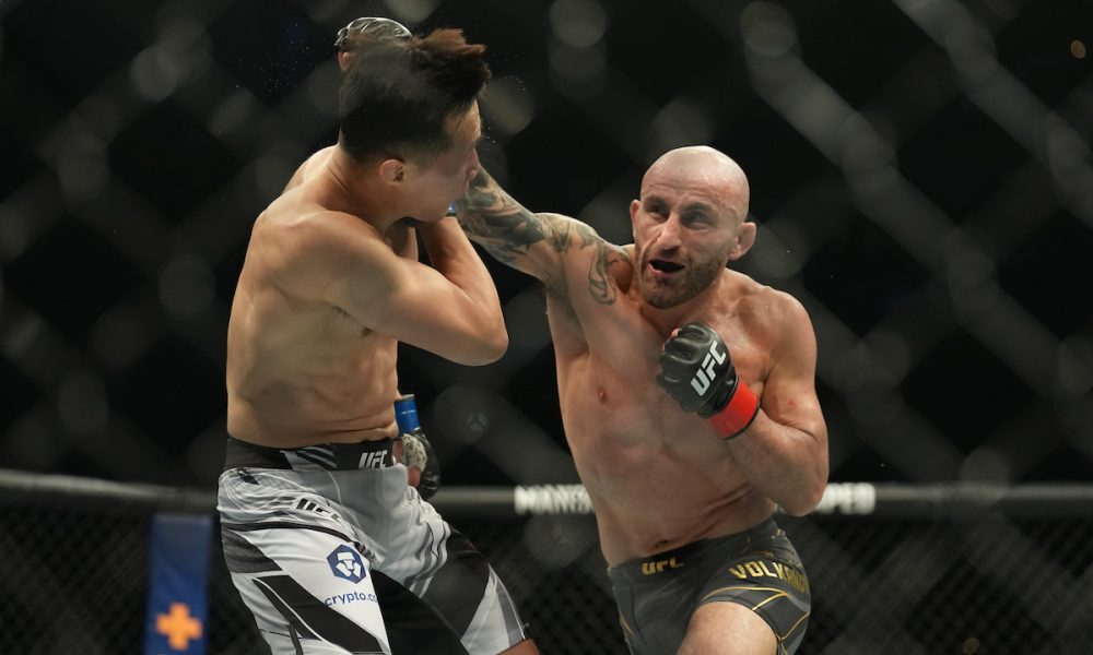 Na luta principal do UFC 273, realizado neste sábado (9), em Jacksonville (EUA), Alexander Volkanovski subiu no octógono para encarar Chan Sung Jung, em disputa válida pelo cinturão peso-pena (66 kg) da organização. E, com uma atuação impecável, o australiano dominou o ‘Zumbi Coreano’ e saiu vitorioso, mantendo o título e a soberania da divisão.