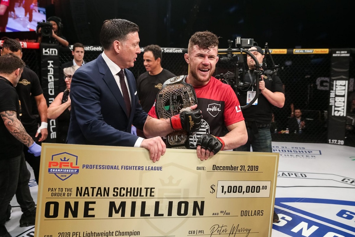 Natan Schulte está com uma sequência de nove vitórias e apenas um empate desde 2017, mantendo sua invencibilidade no PFL, evento em que é bicampeão do GP do peso-leve. Na carreira, o catarinense tem 20 triunfos, três reveses e um empate.