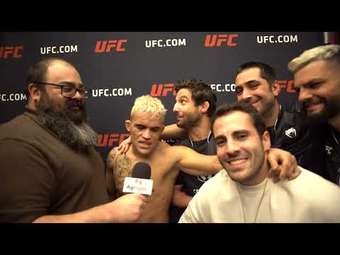 “Esses caras aqui, está faltando o Gabriel Checco… Se não fossem esses caras… Vocês não estão entendendo. Eu fiquei mais de duas horas e meia dentro da sauna. Não foram 30 segundos, não foi uma hora, intervalo, indo e voltando. Foram duas horas e meia de sauna seguida. E o meu peso travou, não saía por nada. Se não fossem esses caras, eu não tinha lutado hoje. Teve uma hora que eu não aguentava mais, eu estava chorando já. Eles me pegaram: ‘Vem aqui, vamos ficar’. Ficaram comigo até o final. Então, essa vitória é para eles, para esses caras aqui e para o Checco que está em casa”, retribuiu Daniel.