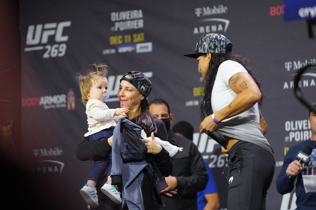 “A Raegan agora está grande, vai para a escola, ela compreende já muita coisa. Então, é mais fácil. Na verdade, eu fiz um camp quando ela tinha quatro meses de vida, que foi para a (luta com) Megan Anderson. Para mim, fazer um camp com ela daquele tamanho e com ela agora não muda nada. A gente consegue administrar direitinho. A gravidez está sendo tranquila”, comentou Amanda, antes de continuar.