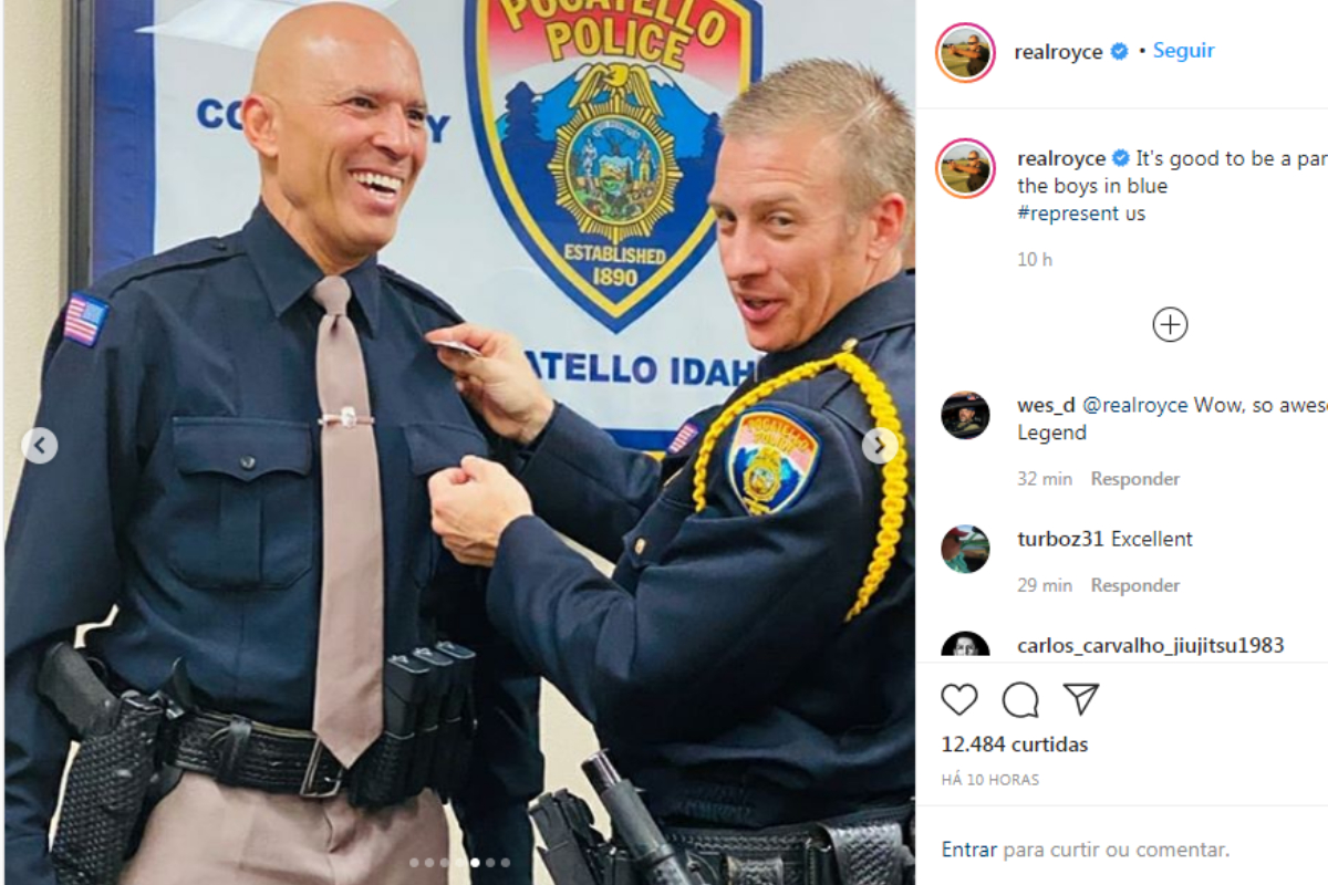 A equipe de policiais reservas de Pocatello incluiu outras celebridades, como os atores Erik Estrada e Dean Cain. Na publicação feita por Royce em sua página oficial no ‘Instagram’ (veja abaixo ou clique aqui), é possível ver o ex-lutador participando de alguns treinamentos específicos com armas de fogo, além do registro do momento em que recebe seu distintivo.