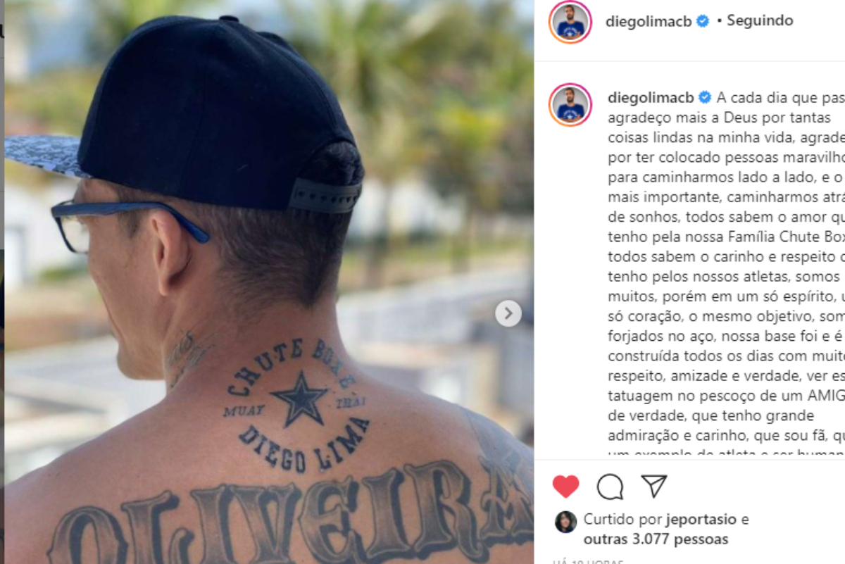 ‘Do Bronx’ fez uma tatuagem com a logo da equipe nas costas e Diego Lima, líder do time, não poderia deixar de comentar mais uma prova de amor do lutador com todos. Por isso, através das redes sociais (clique aqui ou veja abaixo), o treinador divulgou a foto da arte feita pelo paulista e escreveu uma linda mensagem ao atleta.
