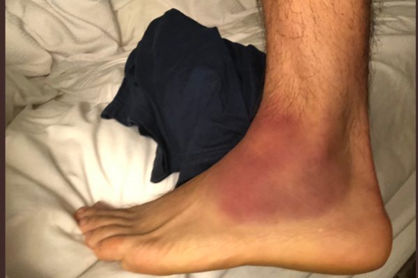 Cejudo’s ankle BEFORE the fight ? Swipe for the close up (via @bokamotoespn, @arielhelwani) #UFC238