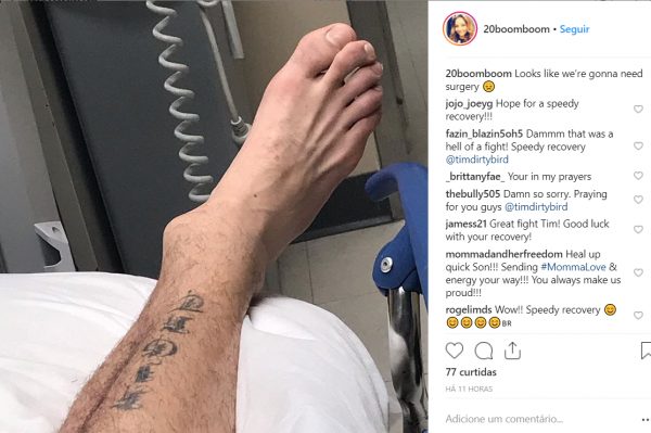 A noite de Tim Means parecia caminhar para um final feliz, mas um cruzado de direita frustrou os planos do lutador e causou um prejuízo maior do que o habitual. Isso porque o golpe que levou o meio-médio (77 kg) a nocaute fez com que ele caísse desacordado com o peso de seu corpo sobre o tornozelo. A queda causou uma fratura na região (veja abaixo ou clique aqui), com necessidade de cirurgia.