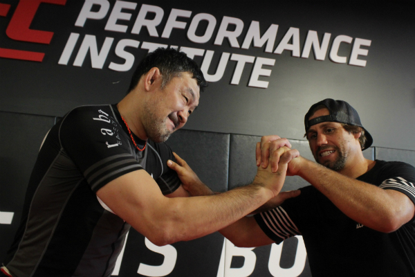 Urijah Faber ao lado da lenda do MMA japonês Sakuraba – Diego Ribas