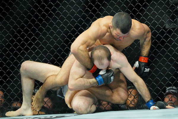 Assim que o gongo soou, o campeão do ADCC de 2015 partiu para o clinche e derrubou o rival em três oportunidades, até conseguir ir para as costas e trabalhar seu jogo até a montada. De lá, rapidamente ele conectou um estrangulamento chamado katagatame, que garantiu o final da luta sem danos e traumas para os envolvidos.
