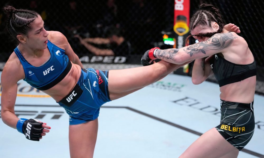 Primeira brasileira em ação no card do UFC Vegas 48, evento realizado neste sábado (19), Gloria de Paula anotou seu primeiro triunfo na organização. Contratada após impressionar Dana White no programa ‘Contender Series’, a atleta anotou duas derrotas antes de, finalmente, ter seu braço erguido no octógono.