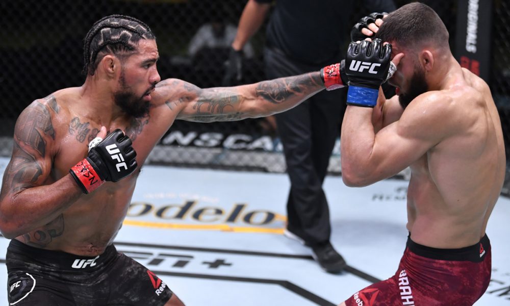 A segunda luta do card preliminar do evento realizado pelo UFC neste sábado (7) em Las Vegas (EUA) contou com cenas fortes. Depois de ser dominado pelo rival Max Griffin durante todo o confronto, Ramiz Brahimaj foi obrigado a desistir após sofrer incrível corte em sua orelha.